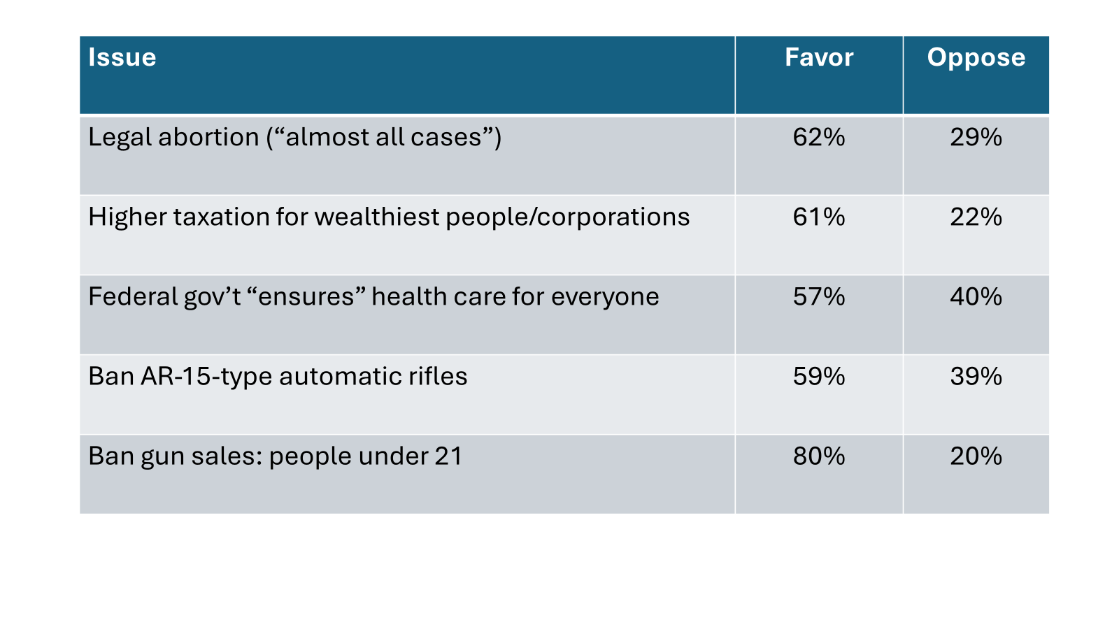Here’s a quick look at what the public wants (data from various recent polling):